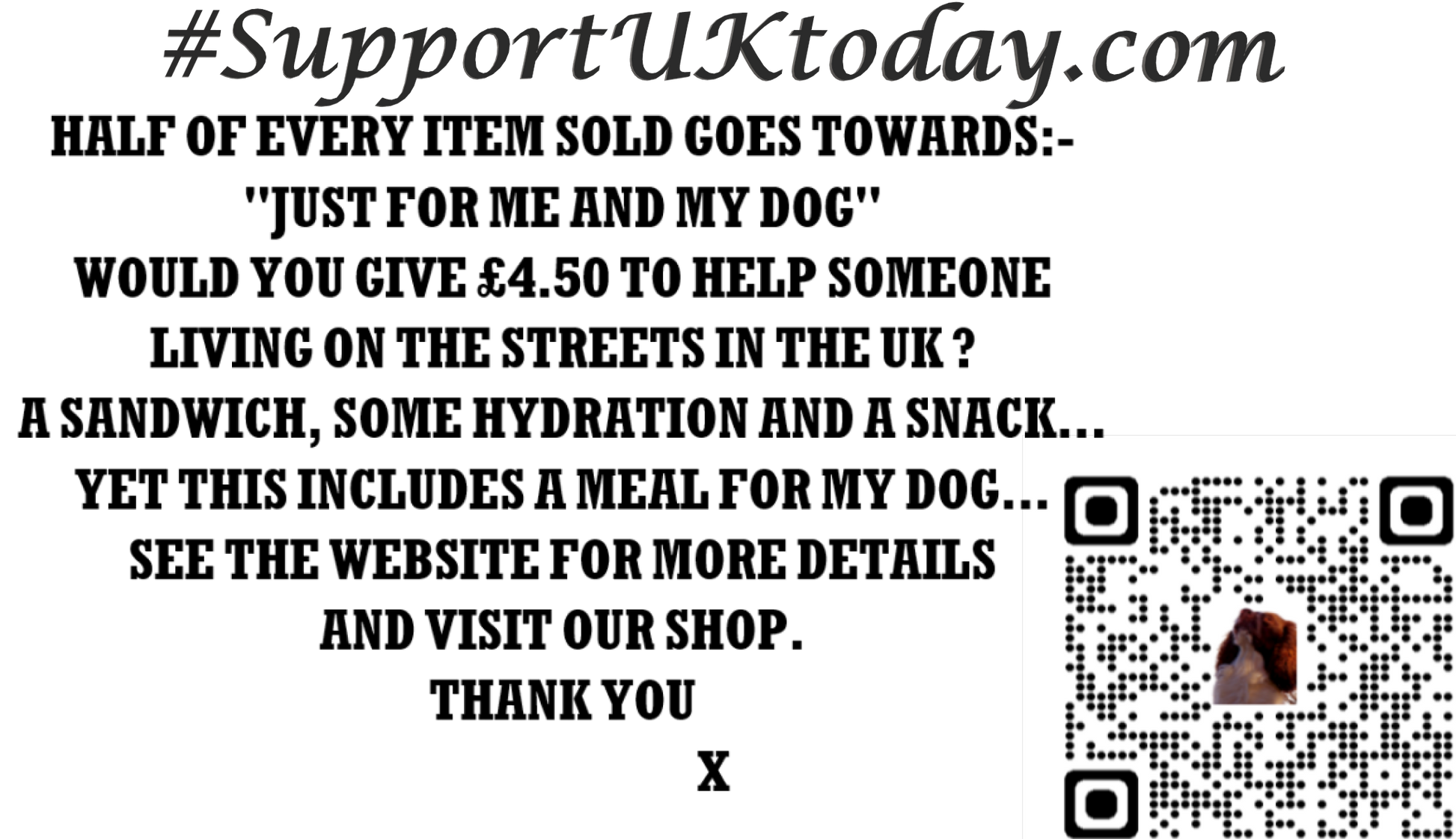 Your gift or purchase could be the difference between begging for food or giving back some semblance of humanity to those stuck because of their love for their dog.